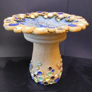 Frostproof garden ceramics and a range of colourful domestic ware can be viewed. Some new smoke-fired vessels and figurative sconces contrast with teapots, jugs and other functional but decorative items for use around the home. Ideas originate from nature, historical sources and work of early potters; from the landscape, geology and clay itself.
